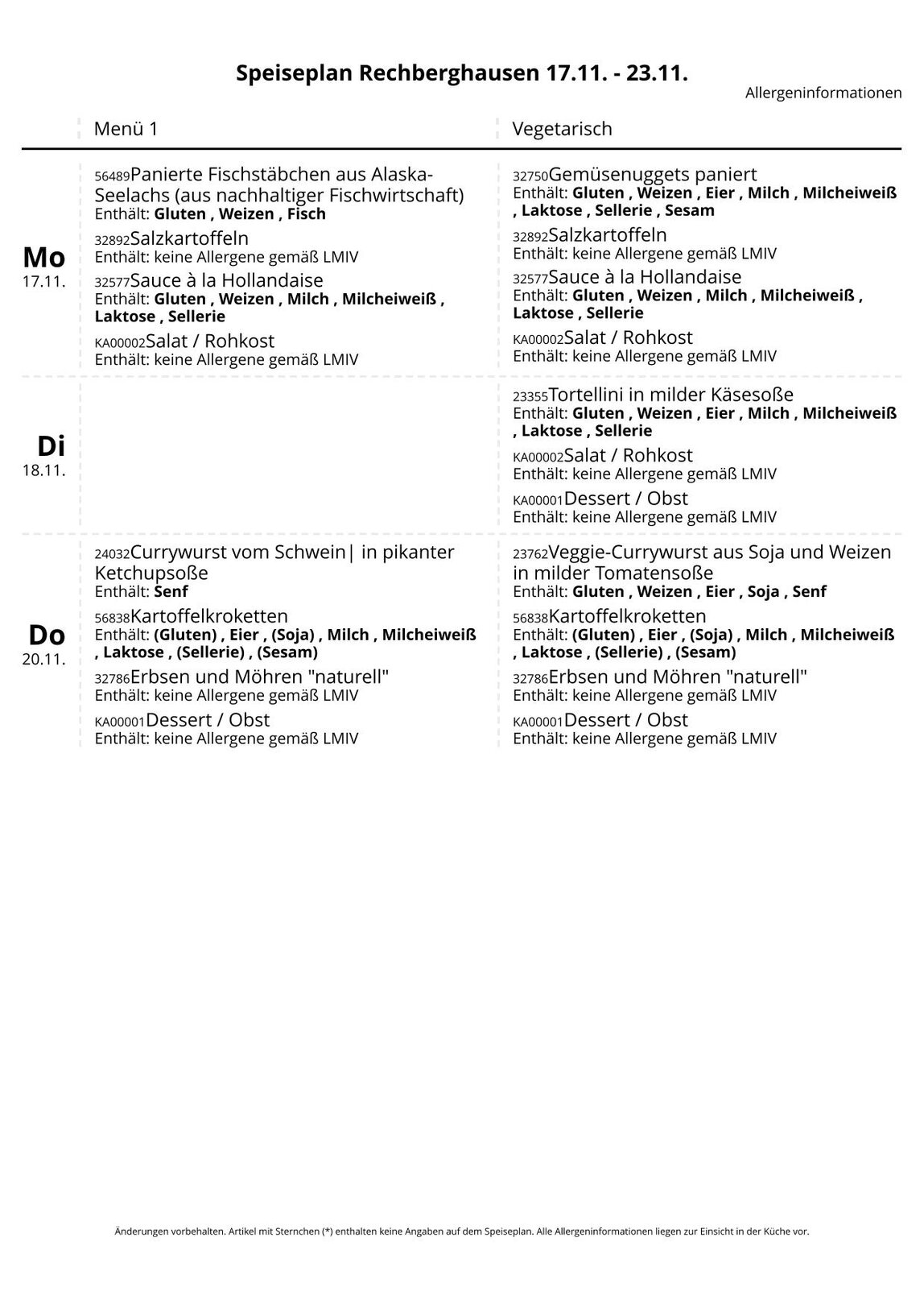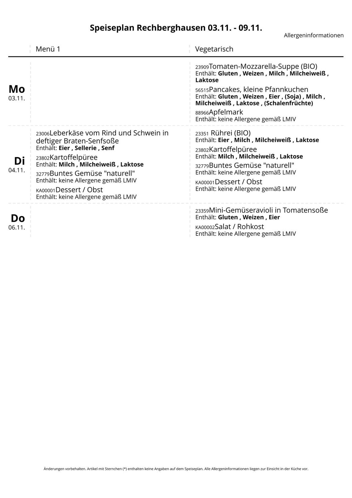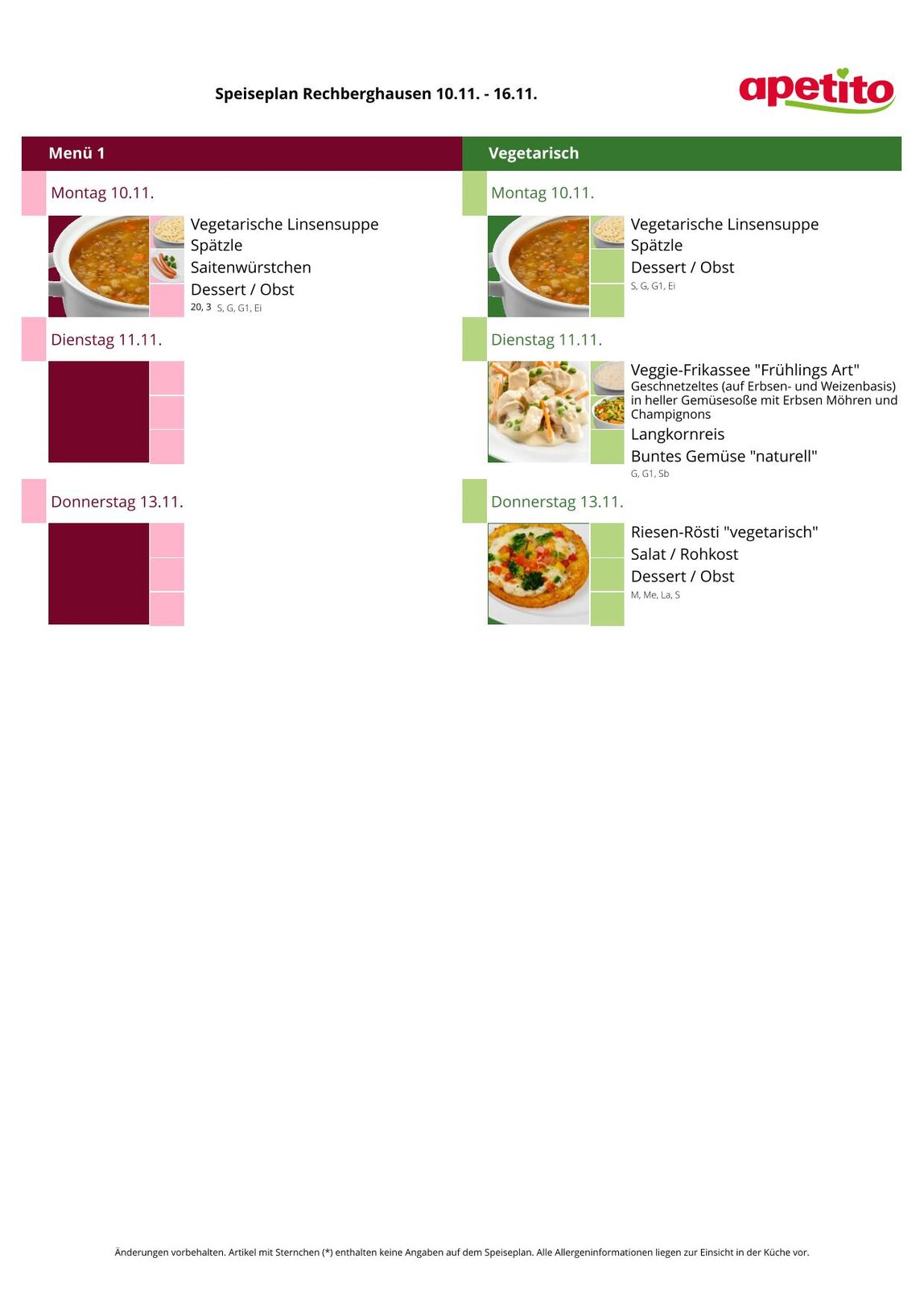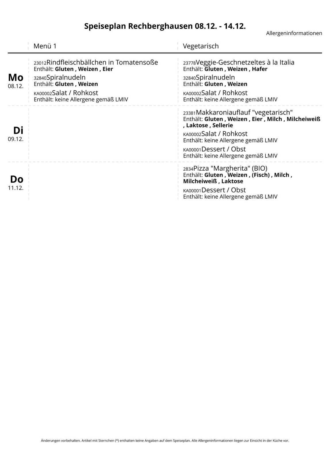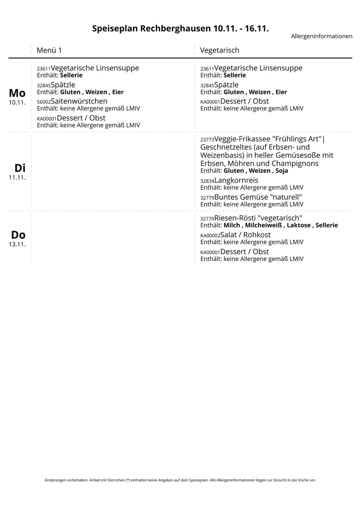 Für weitere Speisepläne bitte nach links oder rechts wischen.